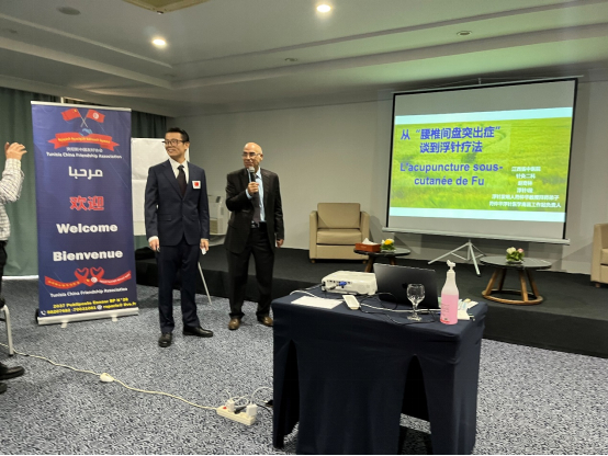 12月1日,应突尼斯针灸学会会长、突尼斯中国友好协会会长热巴利会长的邀请,中国(江西)第28批援突尼斯医疗队驻首都全体队员出席突尼斯针灸学会学术研讨会。金瓶梅电影援外队员赵奇林作为医疗队代表以《从“腰椎间盘突出症”谈到浮针疗法》为题为突尼斯医生带来了一场学术讲座。