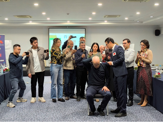 金瓶梅电影援外队员赵奇林医生通过对腰椎间盘突出症病因的剖析,向突尼斯同行阐释了一个命题:腰椎键盘突出症的相关病因并不全是神经压迫,而是患肌作为主要致病因素。随后向大家介绍浮针疗法及患肌的观念,这引起了突尼斯同行极大的兴趣和反响。为进一步加深理解,讲座现场特别邀请了突尼斯的针灸同行参与浮针疗法的操作演示,亲身体验了浮针治疗的过程。这一互动环节不仅增强了理论与实践的结合,也为讲座增添了实践操作的直观感受。