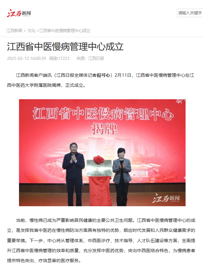 【江西新闻客户端】江西省中医慢病管理中心成立