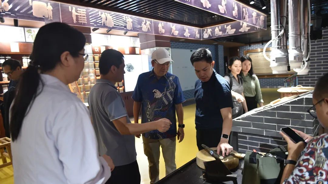 工作人员向印尼来宾介绍中药传统炮制技术
