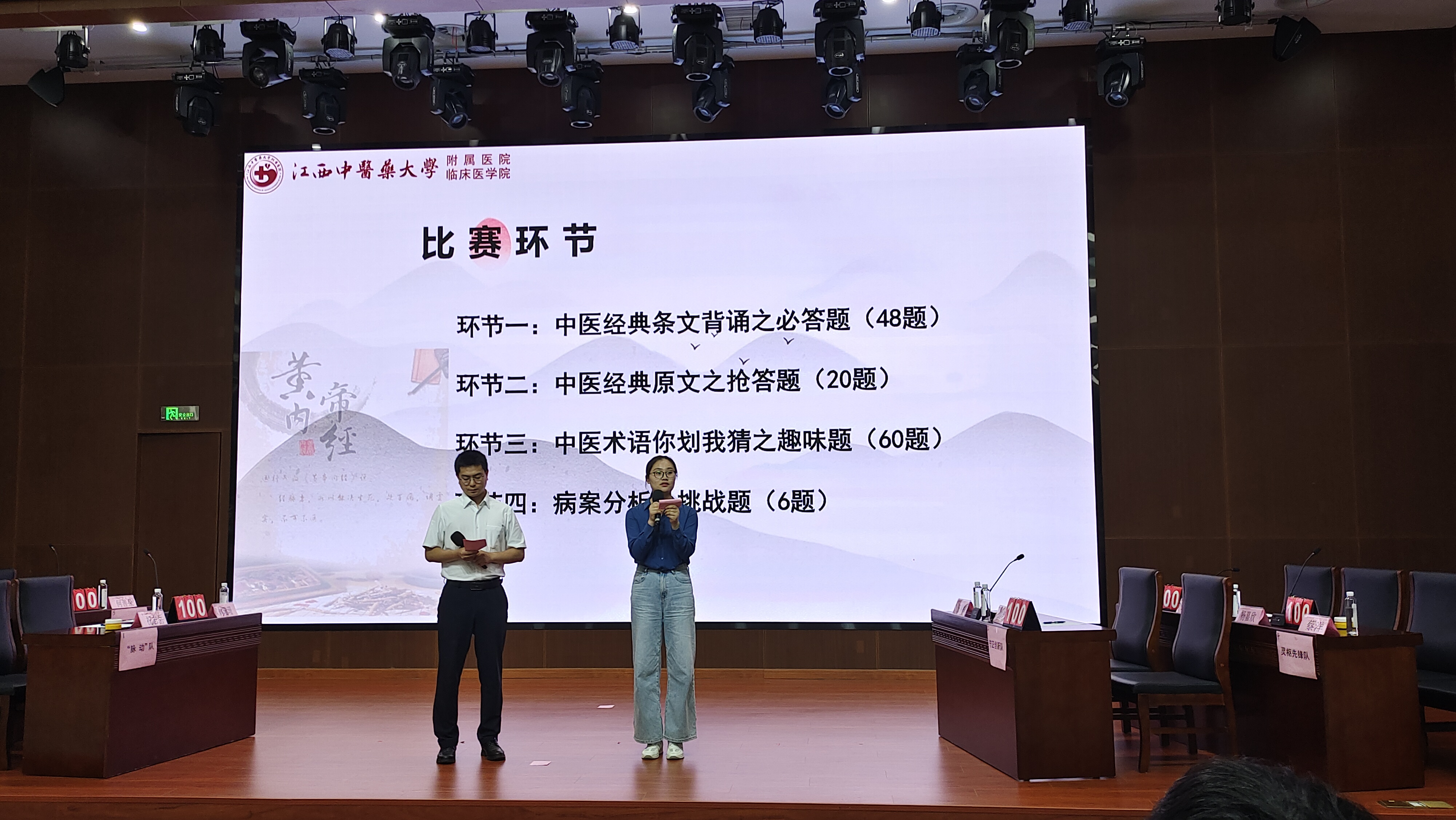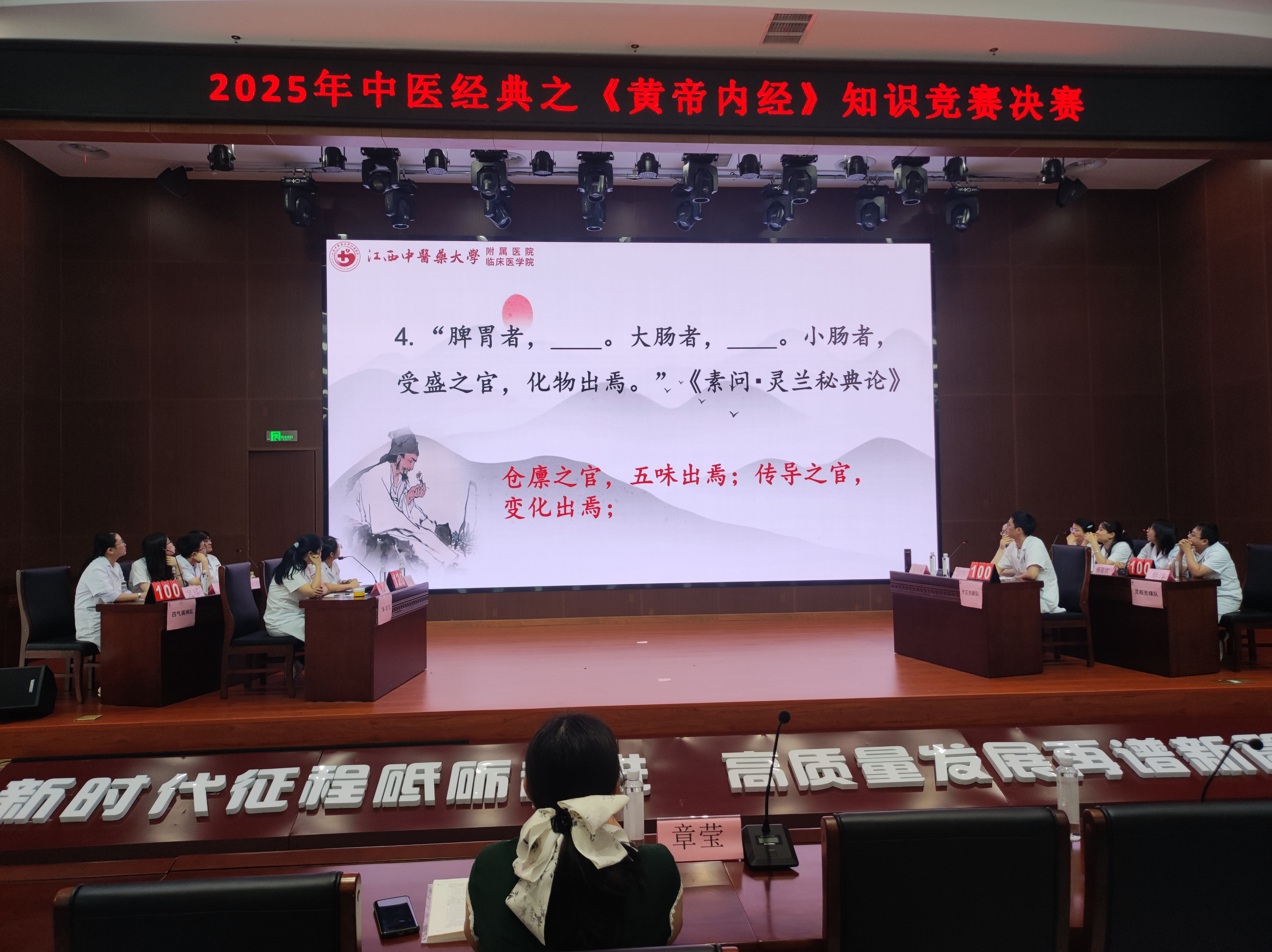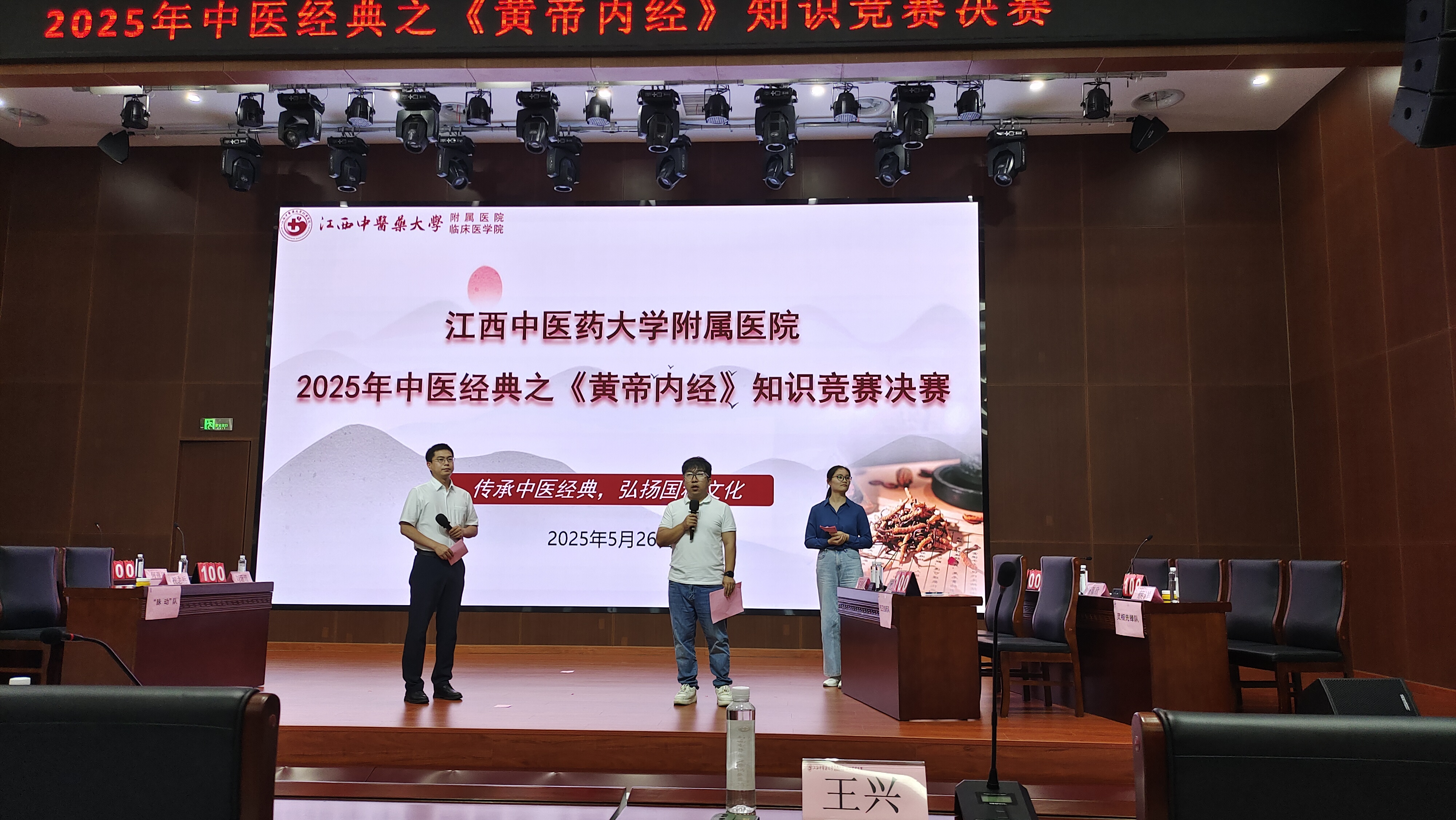 为深入挖掘和弘扬中医药文化,进一步加强临床医生对中医经典的深入学习和实践应用,推动中医药事业的传承与发展。5月26日下午,医务部组织开展了《黄帝内经》知识竞赛决赛。本次竞赛邀请到江西中医药大学中医基础理论教研室主任章莹副教授亲临现场点评,医务部主任李芳、副主任王兴、质量管理科桂茜茹副科长出席。同时,100余名医生及学生到场观赛。