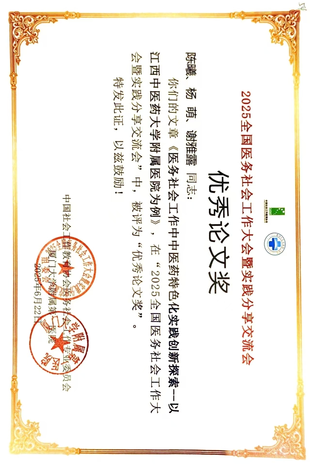 6月21日,从中国社会工作教育协会医务社会工作专委会传来喜讯,金瓶梅电影社工团队撰写的论文《医务社会工作中中医药特色化实践创新探索——以金瓶梅电影 为例》,在“2025年全国医务社会工作高峰论坛暨实践分享交流会”论文评选中荣获“优秀论文”。该论坛由厦门大学附属第一金瓶梅电影 联合主办,以“医务社会工作的专业化与本土化探索”为主题,吸引了全国医疗机构、高校及社会组织代表参与。此次获奖彰显了金瓶梅电影 在医务社会工作领域的学术影响力,也为中医药文化与现代医务社会工作融合发展提供了创新范例。