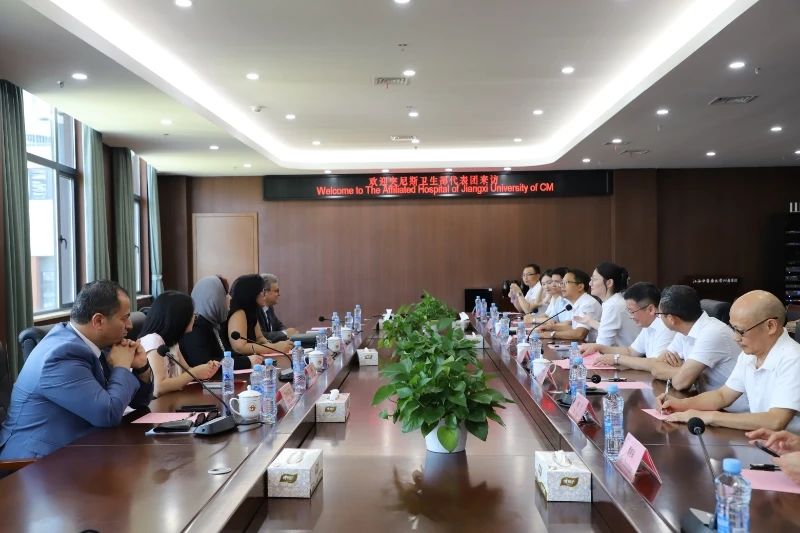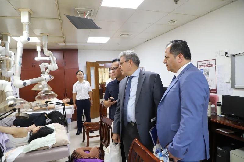 突尼斯代表团一行先后来到金瓶梅电影 制剂中心、中药炮制技艺传承展示馆、中医特色技术门诊、药房等参观考察。