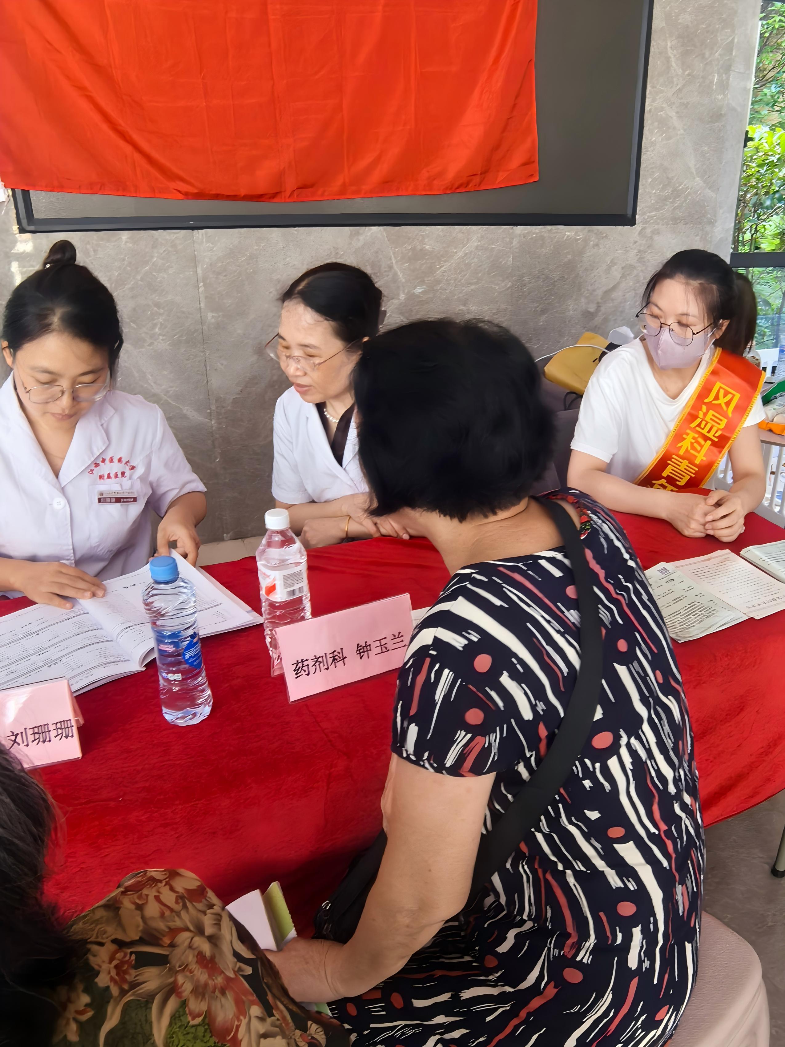 考虑到社区中老年居民较多,普遍存在用药种类多、用药知识薄弱等问题,药剂科钟玉兰主任在用药指导区为居民提供“一对一”用药咨询服务。她仔细查看居民手中的药品清单,逐一讲解每种药物的服用剂量、时间、注意事项及可能的不良反应,提醒大家避免重复用药、滥用药物,同时指导居民如何正确储存药品,确保用药安全。