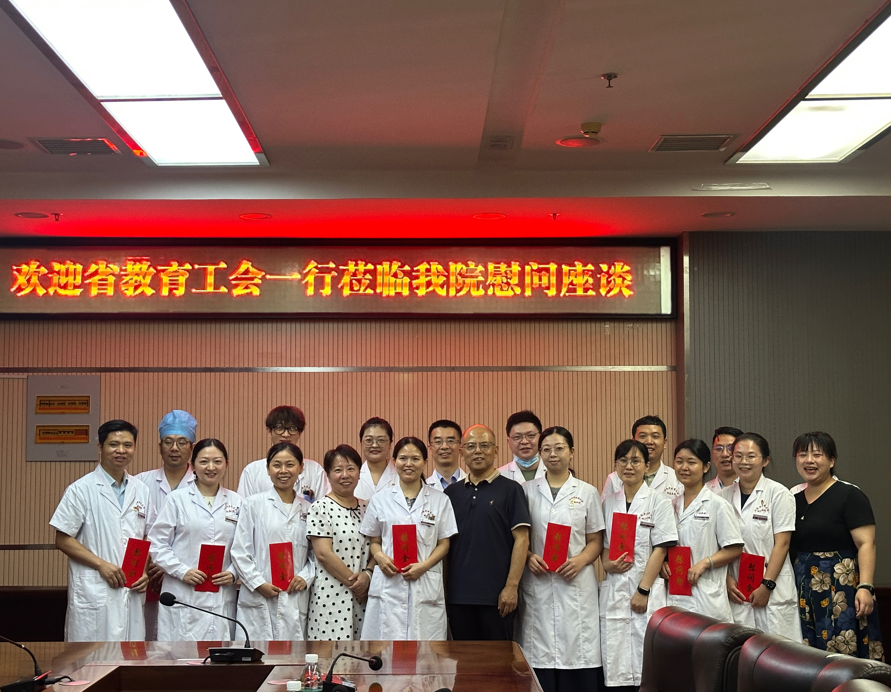 第八个“中国医师节”到来之际,省总工会、省教育工会领导蒋云国、宋懿非、罗福云一行莅临金瓶梅电影,亲切看望临床一线优秀医师代表,为他们送上节日祝福。座谈现场,蒋云国详细了解了一线职工的工作近况与身心状态,对全院医务人员为守护人民群众生命健康付出的辛勤努力表达了感激与敬意。