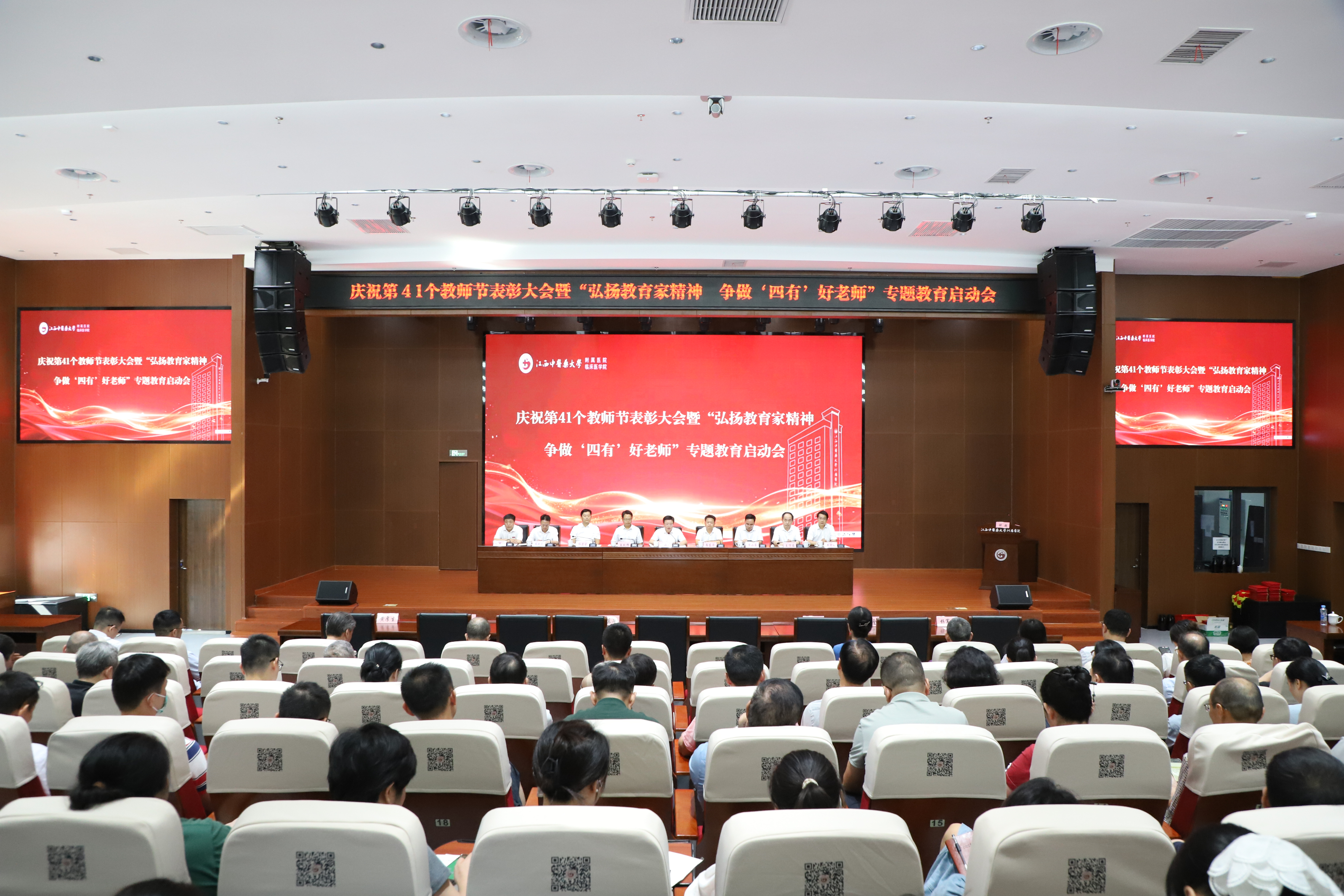 9月10日下午,为表彰奋斗在临床教学一线的优秀教师,激励广大医师投身医学教育事业,附属金瓶梅电影 (临床医学院)隆重召开庆祝第41个教师节表彰大会暨“弘扬教育家精神争做'四有’好老师”专题教育动员会。学校党委委员、副校长、附属金瓶梅电影 (临床医学院)党委书记严小军出席会议并讲话。全体院领导出席会议并为获奖人员颁奖。会议由金瓶梅电影 党委委员杨军平主持。