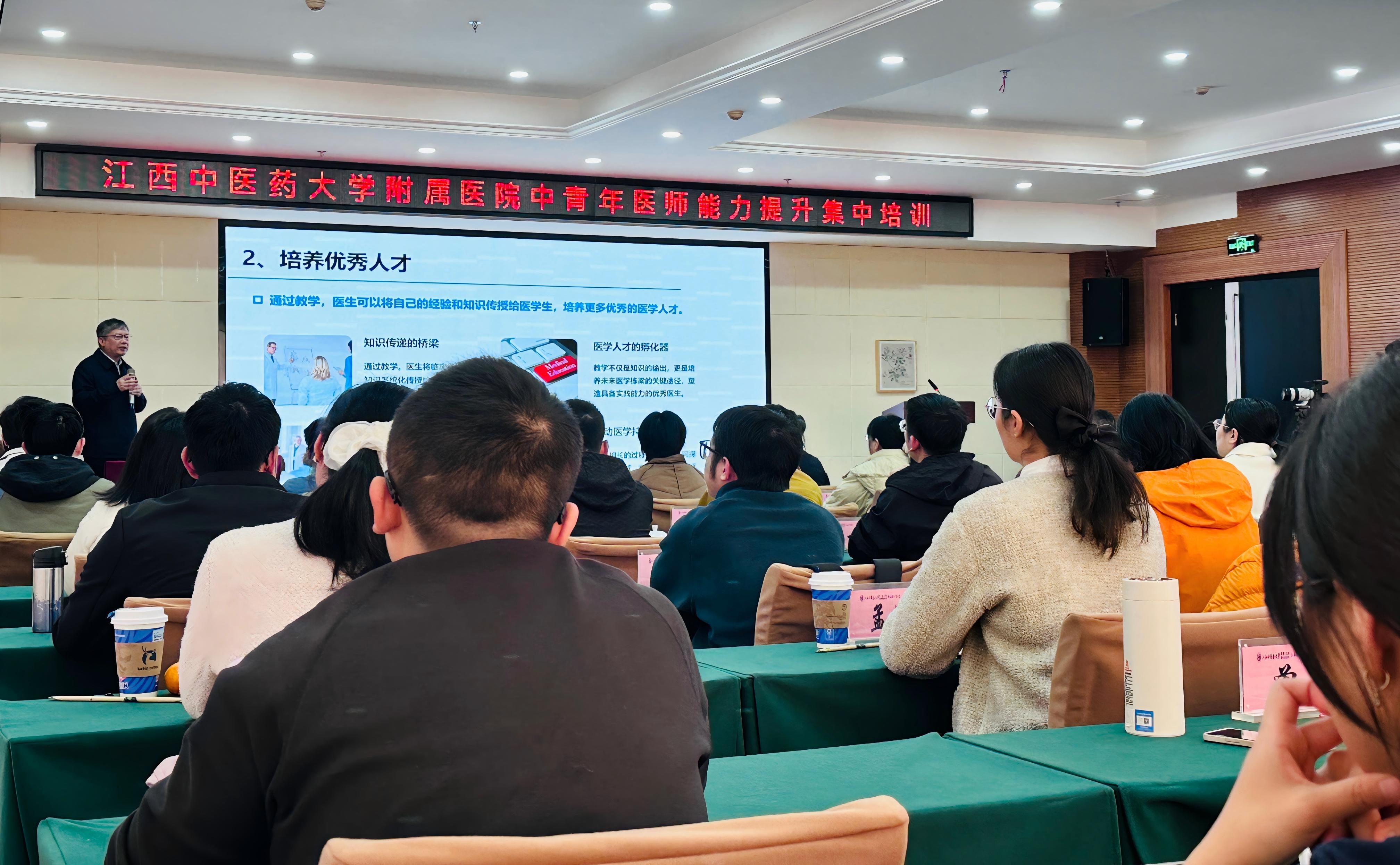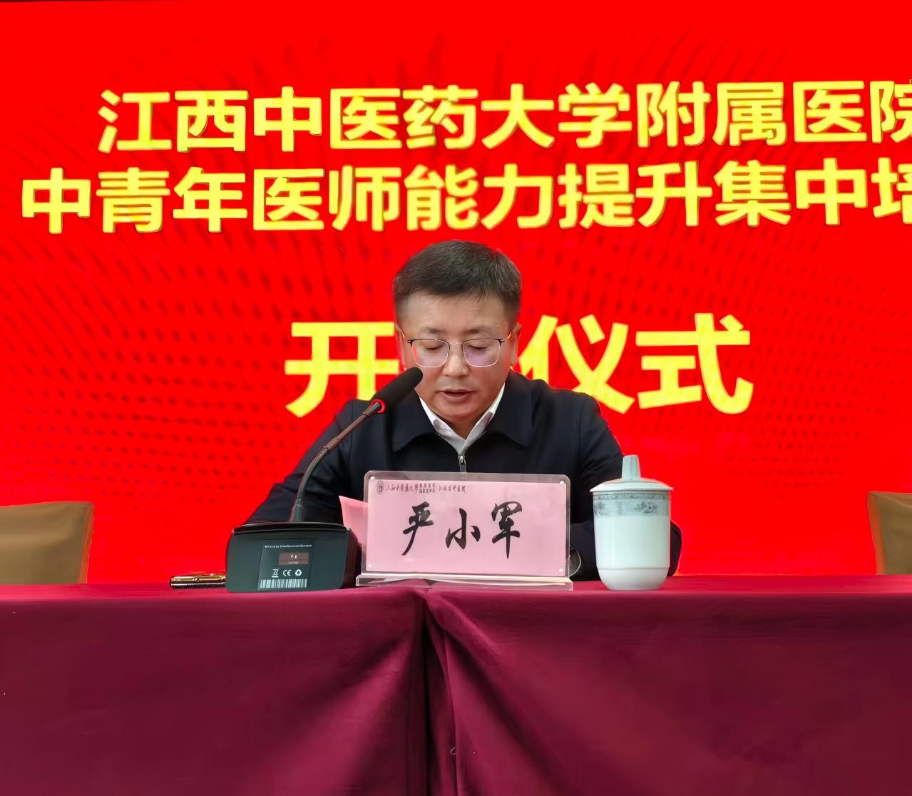 开班仪式上,江西中医药大学党委委员、副校长,附属医院党委书记严小军作动员讲话。他强调,中青年医师是医院发展的生力军,当前正值国家区域医疗中心建设与医院高质量发展的关键阶段,加强人才队伍建设尤为迫切。此次培训聚焦临床基本功、诊疗规范与医德素养,既回应群众健康需求,也契合中医药传承创新的使命。严小军寄语学员:以“空杯心态”钻研医术,做勤学笃行的“有心人”;以实干精神推动临床转化,做勇于担当的“实干家”;以仁心仁术践行“生命所系,健康相托”,做医德双馨的“追光者”。