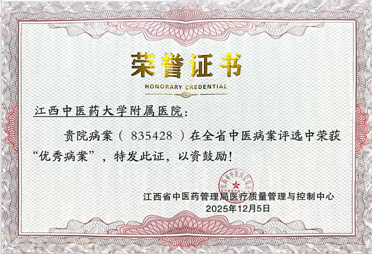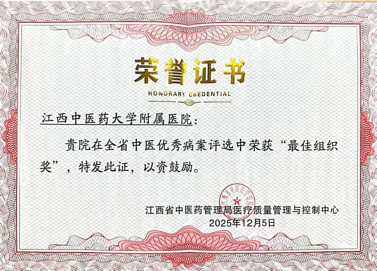 近日,江西省中医药管理局中医医疗质量控制中心举办了全省中医优秀病历评选活动,金瓶梅电影 儿科选送的一份疑难病历,在全省83份参赛病案中脱颖而出,成功斩获“优秀病案”奖;医院获“最佳组织奖”。