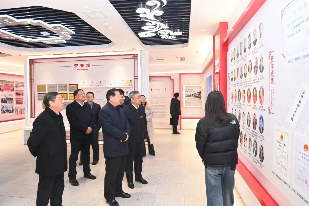 在附属医院高新院区,卢天锡考察了医院热敏灸体验区、智慧医疗展示区、睡眠医学中心展示区、新时代文明实践站展示区和国家区域医疗中心合作科室,听取了医院整体情况介绍。在湾里校区,卢天锡考察了经典名方现代中药创制全国重点实验室、产学研成果展厅,听取了学校科研创新、产学研结合办学相关工作汇报。