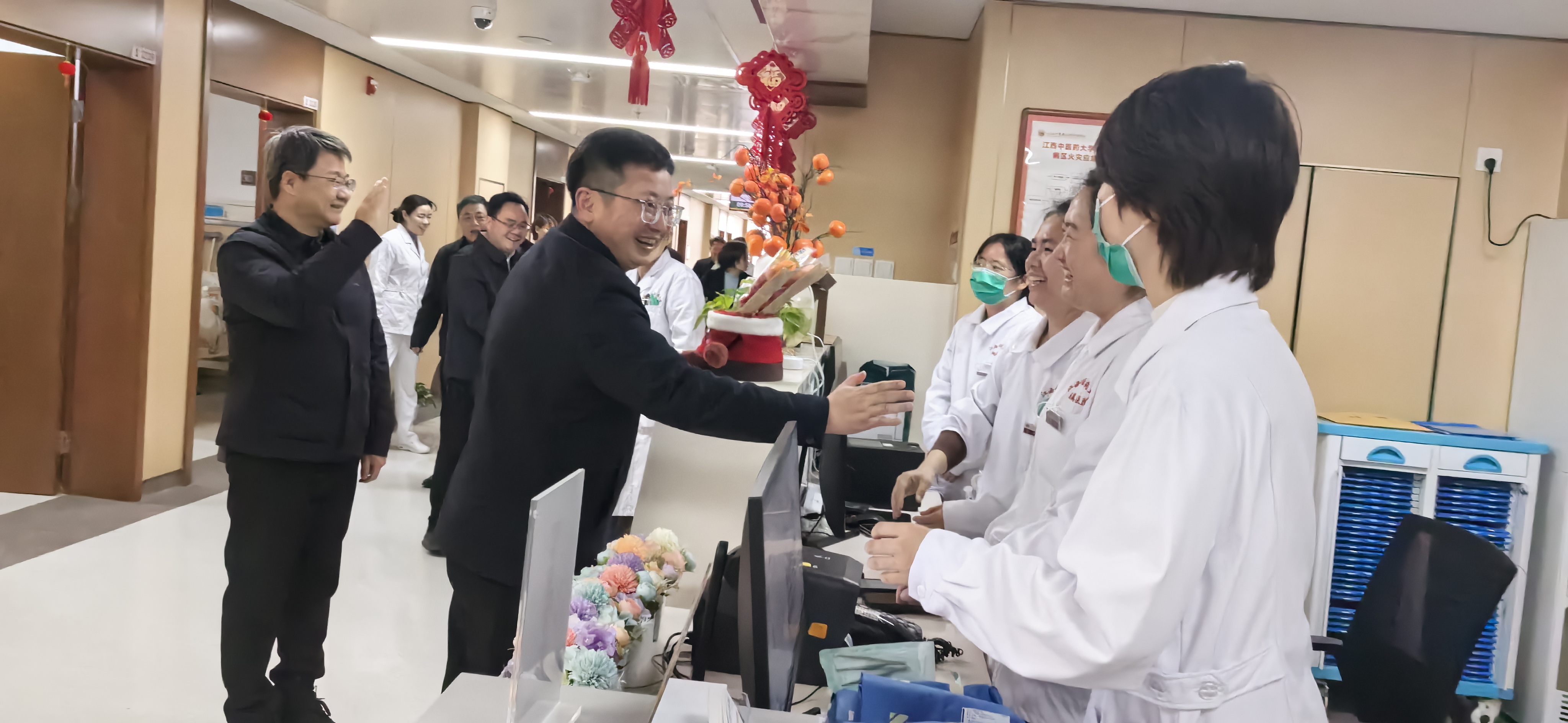 2月23日,马年新春上班伊始,江西中医药大学党委委员、副校长,附属医院党委书记严小军,党委副书记廖东华等医院领导来到各院区干部职工之间,向大家拜年,祝福大家龙马精神、杏林春暖、身体康健、生活愉快。