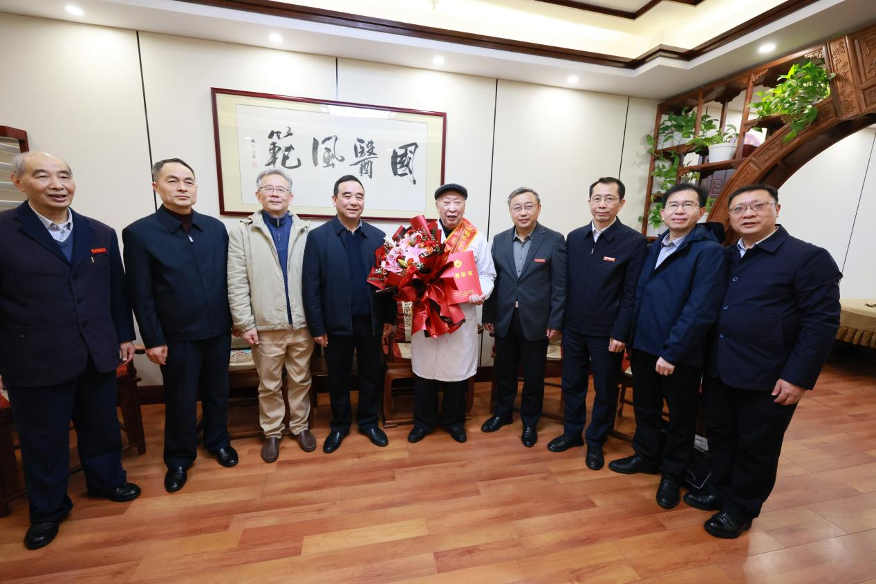 3月13日上午,省教育厅关工委主任甘国华、学校党委书记黄加文来到附属医院国医堂,亲切看望慰问国医大师伍炳彩教授,并送上“全国关心下一代工作先进工作者”荣誉证书。学校党委副书记章德林、省教育工委关工委副秘书长熊春光等陪同慰问。