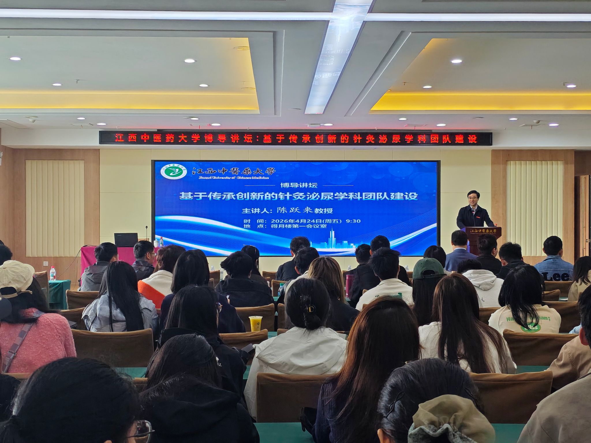 4月24日,江西中医药大学博导讲坛在湾里校区得月楼第一会议室举行,上海中医药大学附属龙华医院陈跃来教授作“基于传承创新的针灸泌尿学科团队建设”专题报告。学校党委委员、副校长(正厅长级)刘潜主持。