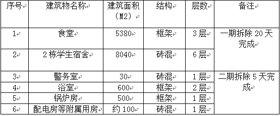 1.3质量要求:拆除建筑物内全部内容,拆除到与室外地面相平,并平整场地,未按要求按时完工,每延期一天罚1万,延期超过10天中止合同,中标单位缴纳的一切费用不予退还;