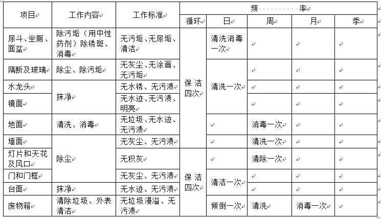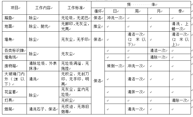 (4)保洁频率及标准: