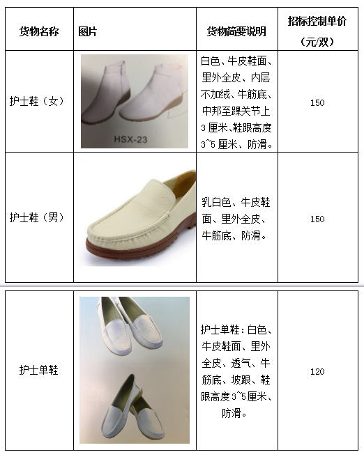 注:供应商报价时需提供清单中图片样品并符合货物简要说明给用户选购,样品不退也不给予损失补偿,最后供货和样品一致;以上均要求标准鞋码,否则一切后果自负。