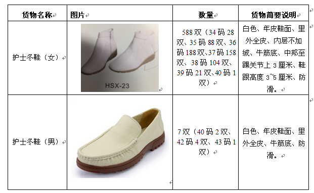 注:供应商报价时需提供清单中图片样品给用户选购(男女各一双),样品不退也不给予损失补偿,最后供货和样品一致,以上均要求标准鞋码。