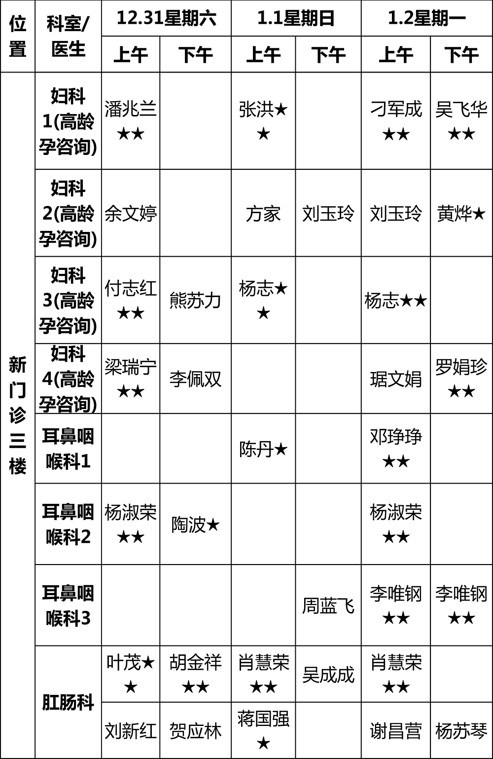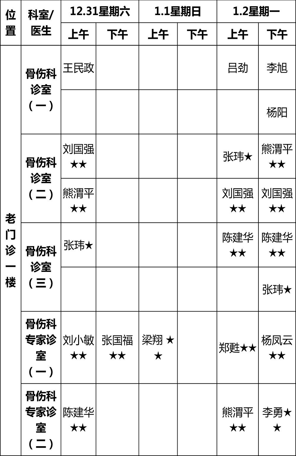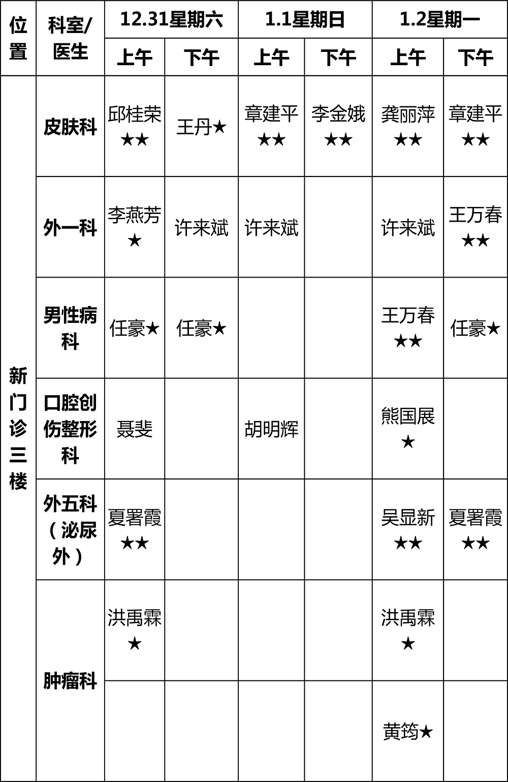 (元旦假期门诊排班可能会有变动,以实际到岗为准)