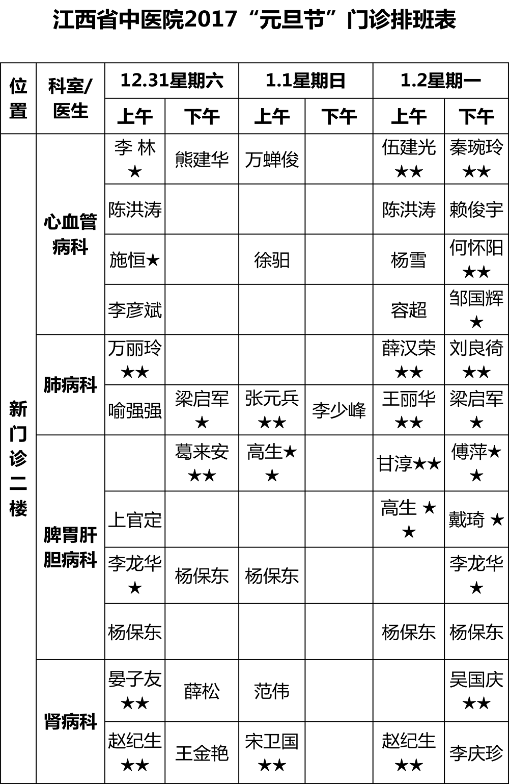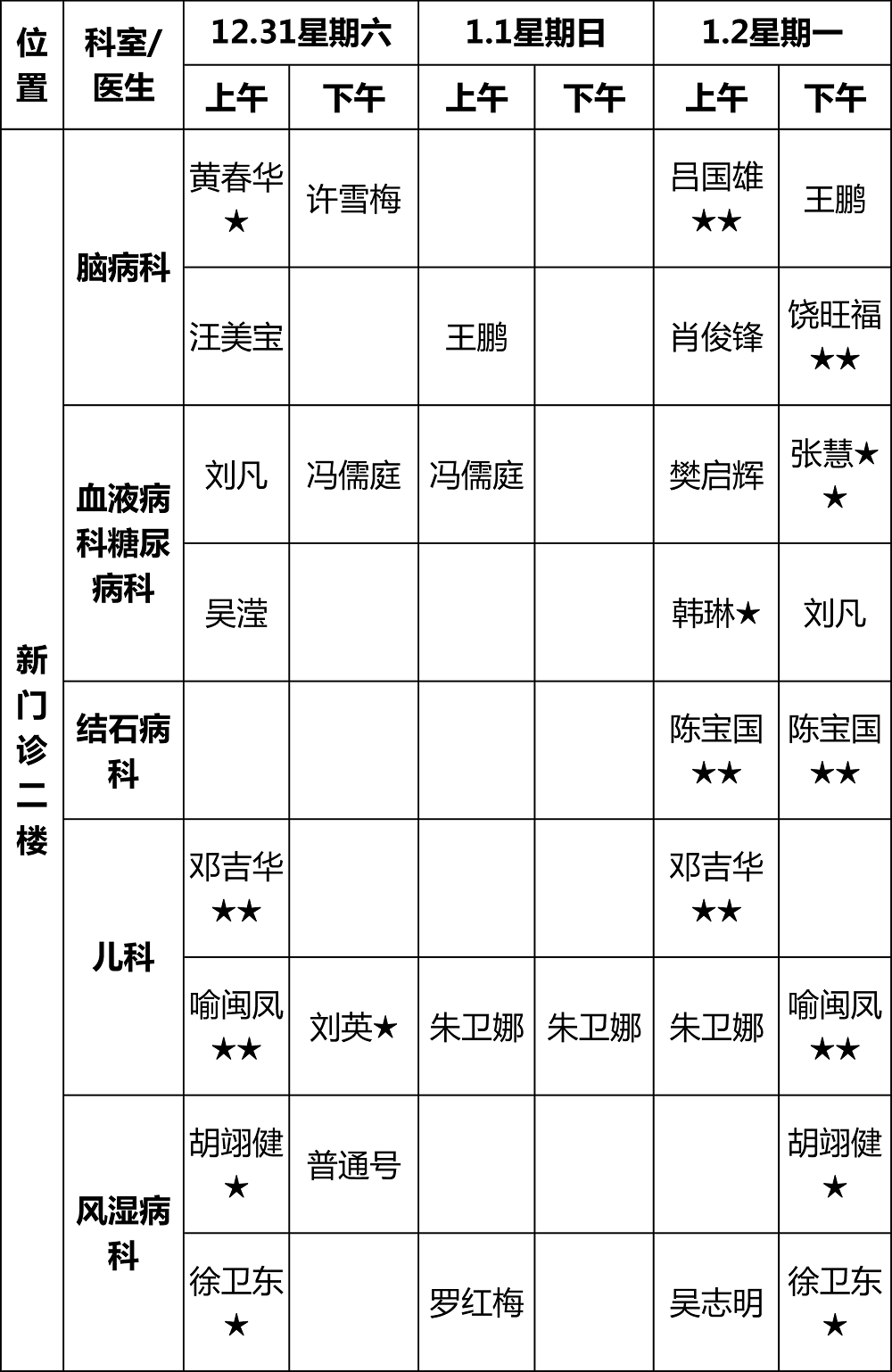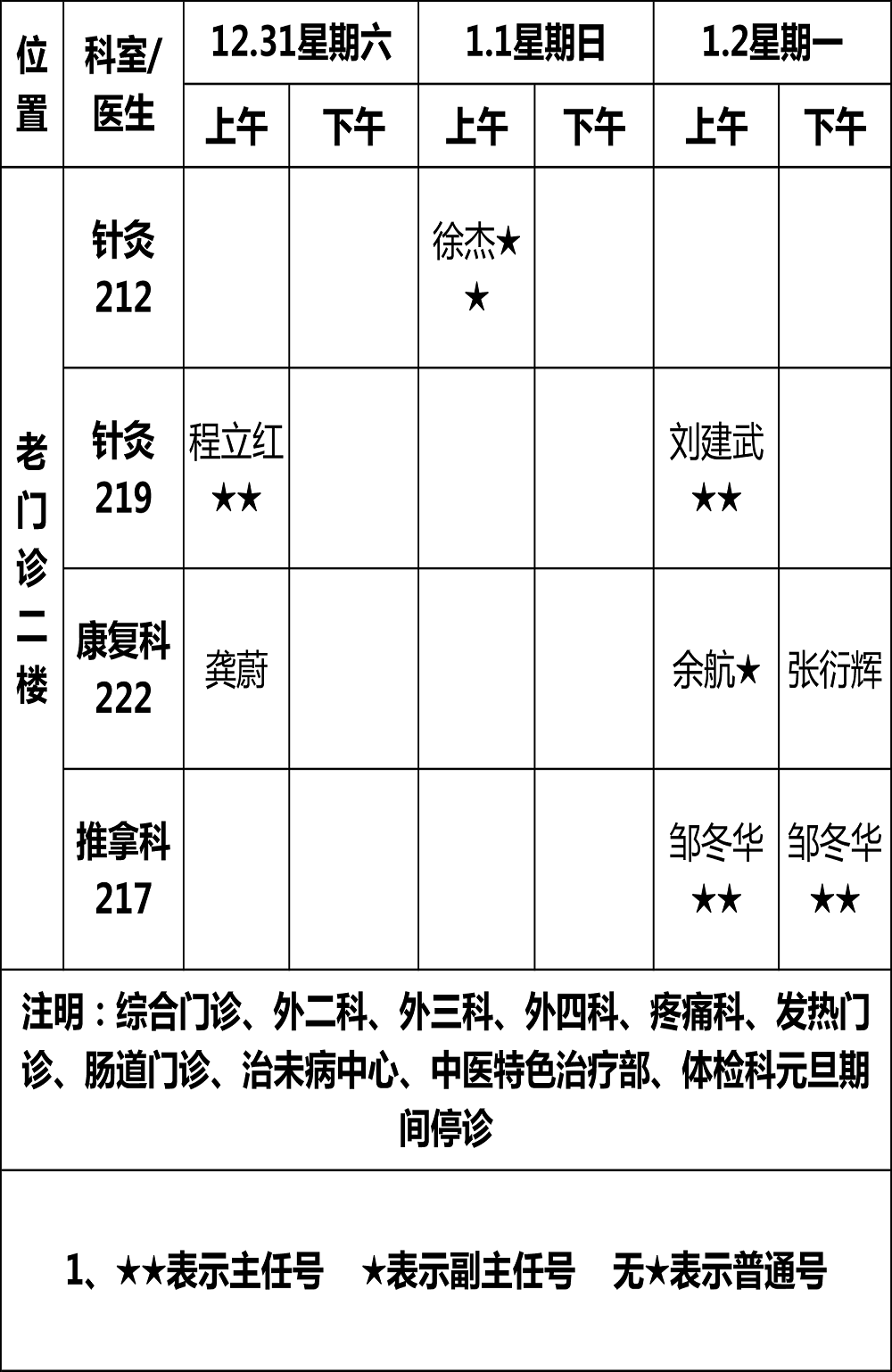 (元旦假期门诊排班可能会有变动,以实际到岗为准)