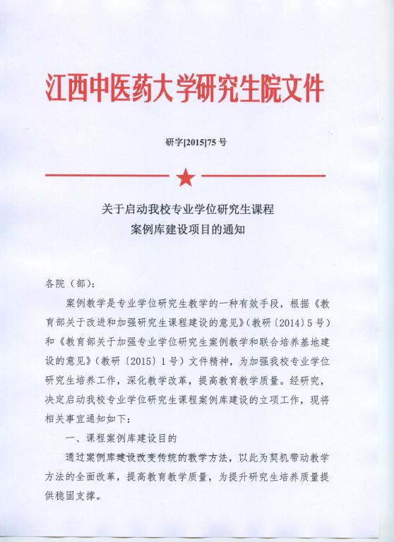 关于启动我校专业学位研究生课程案例库建设项目的通知