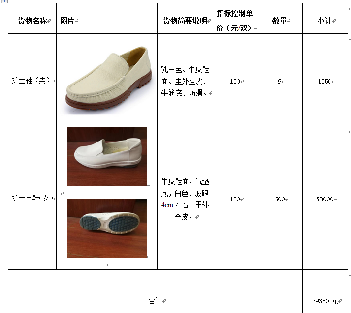 注:供应商报价时需提供清单中图片样品并符合货物简要说明给用户选购,样品不退也不给予损失补偿,最后供货和样品一致;以上均要求标准鞋码,否则一切后果自负。