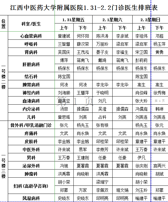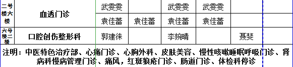 金瓶梅电影 1.31-2.2门诊医生排班表