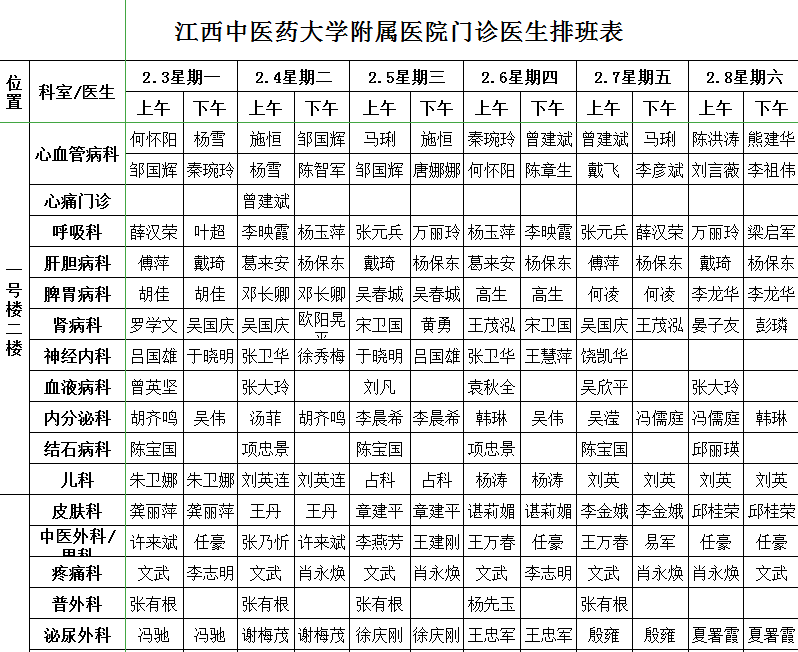 "金瓶梅电影 2.3-2.8门诊医生排班表"