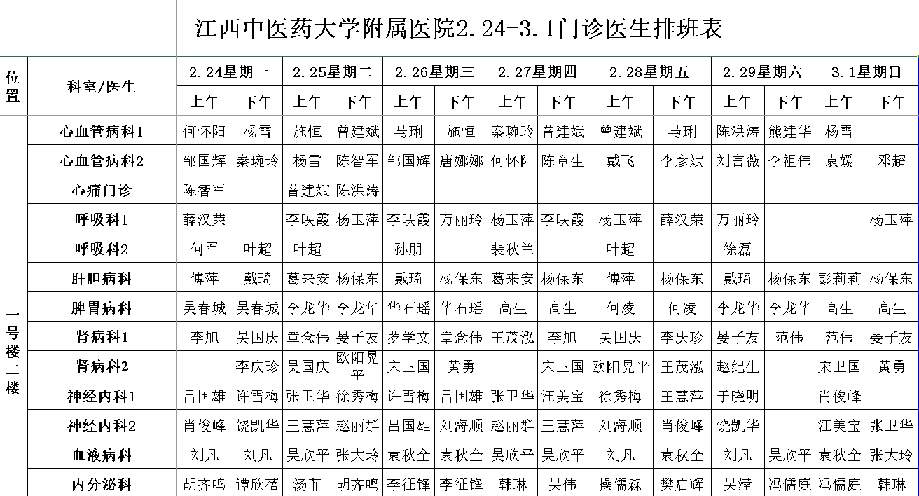 金瓶梅电影 2.24-3.1门诊医生排班表