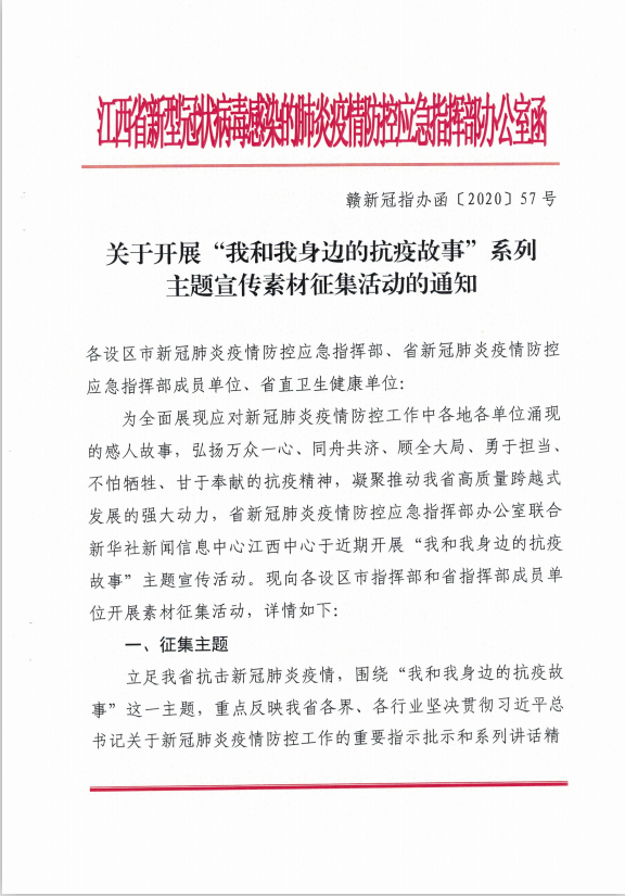 关于开展“我和我身边的抗疫故事”系列主题宣传素材征集活动的通知