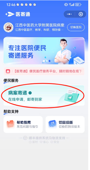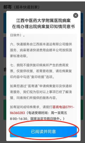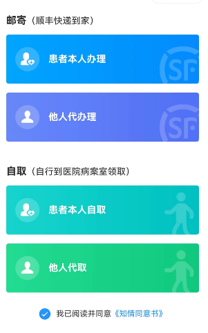 第二步:选择“病案寄递”,阅读病案复印告知书;