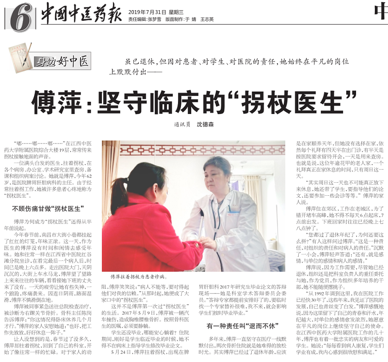 【中国中医药报】傅萍:坚守临床的“拐杖医生”