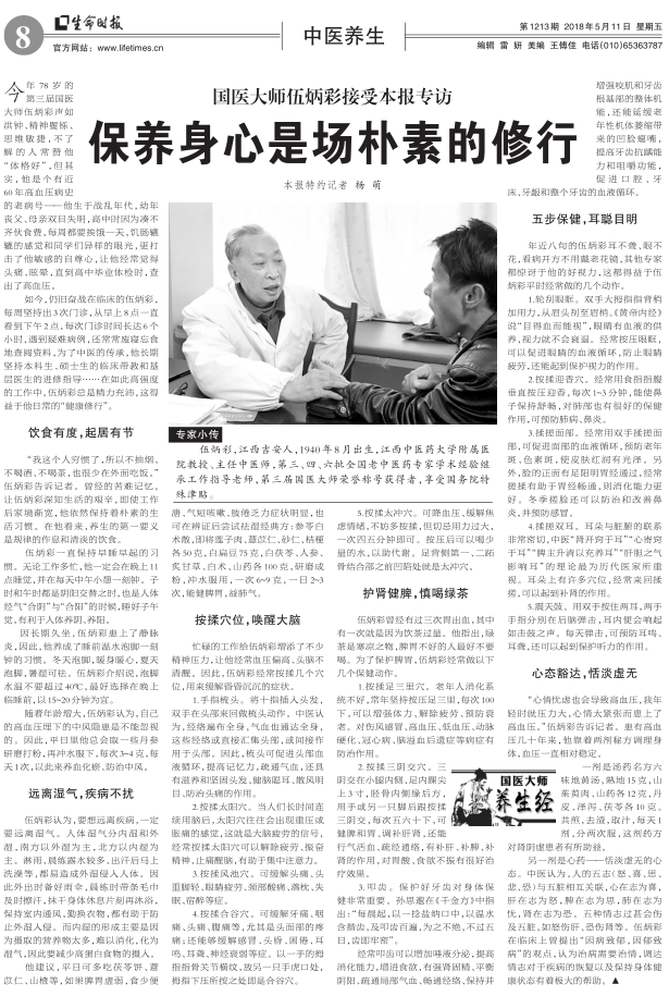 【生命时报】国医大师伍炳彩接受本报专访 保养身心是场朴素的修行