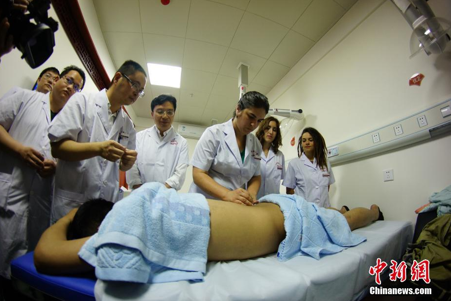 5月16日,在金瓶梅电影 ,“中国—葡萄牙中医药中心”学员培训班开班,来自葡萄牙中医中心的多位医护人员将在此进行系统的热敏灸、扎针、拔火罐等传统中医疗法。“北看天津针,南看江西灸”,江西中医药大学热敏灸技术享誉中外,并在葡萄牙里斯本开设分院,为中葡之间的中医药人才培训、医疗保健、科研交流合作起到重要作用。图为葡萄牙中医中心的医护人员在学习扎针。 王昊阳 摄