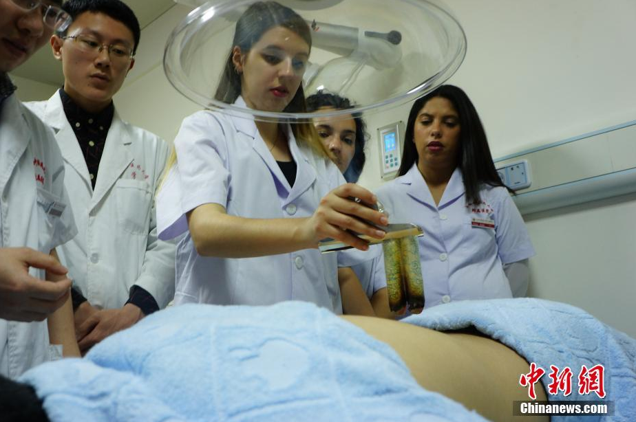 ,“中国—葡萄牙中医药中心”学员培训班开班,来自葡萄牙中医中心的多位医护人员将在此进行系统的热敏灸、扎针、拔火罐等传统中医疗法。“北看天津针,南看江西灸”,江西中医药大学热敏灸技术享誉中外,并在葡萄牙里斯本开设分院,为中葡之间的中医药人才培训、医疗保健、科研交流合作起到重要作用。 王昊阳 摄