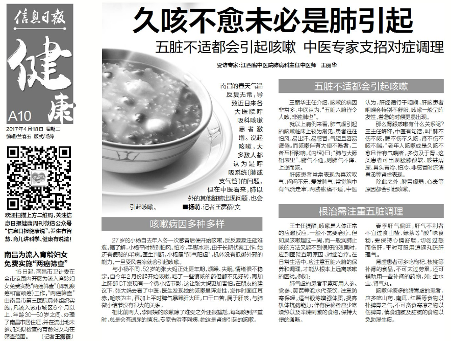 王丽华主任介绍,咳嗽的病因非常多,中医认为,“五脏六腑皆令人咳,非独肺也”。