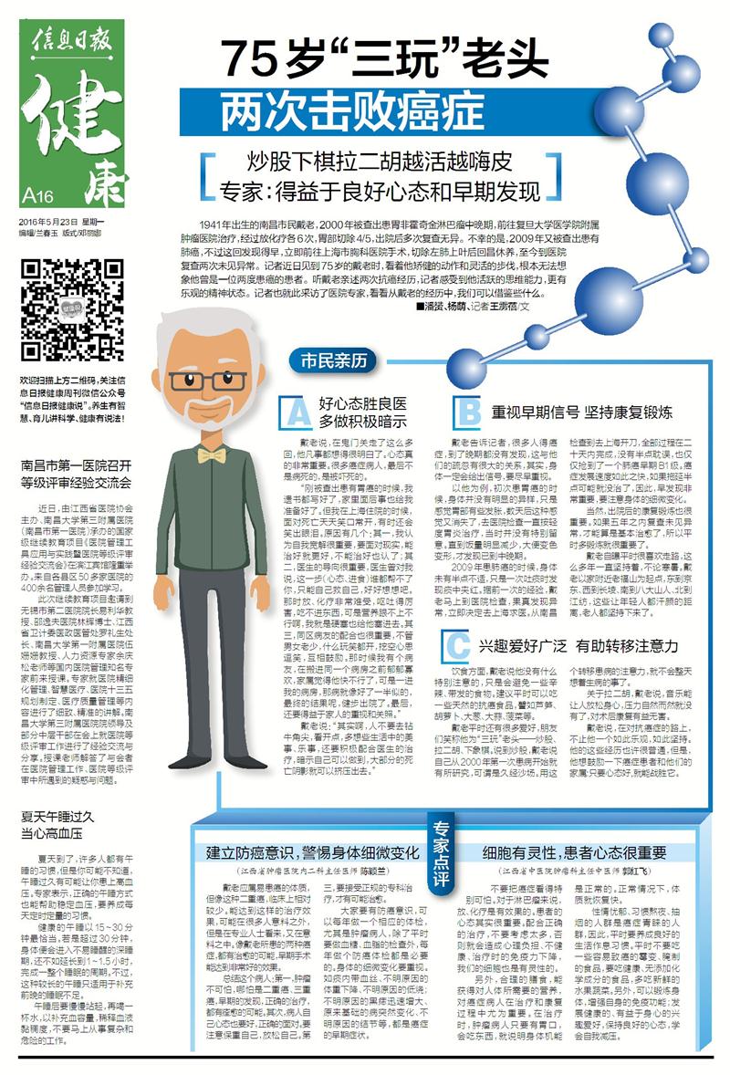 【信息日报】75岁“三玩”老头 两次击败癌症