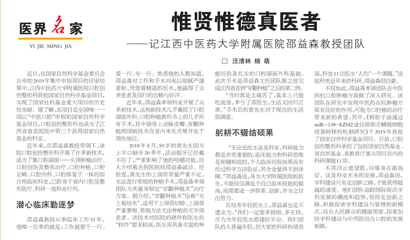 【江西日报】惟贤惟德真医者——记金瓶梅电影 邵益森教授团队