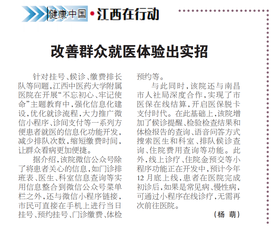 【江西日报】改善群众就医体验出实招