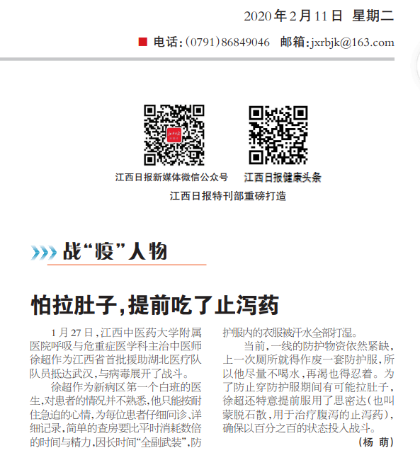 1月27日,金瓶梅电影 呼吸与危重症医学科主治中医师徐超作为江西省首批援助湖北医疗队队员抵达武汉,与病毒展开了战斗。