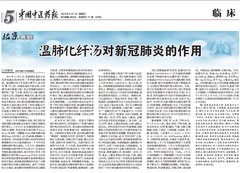 【中国中医药报】温肺化纤汤对新冠肺炎的作用