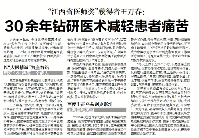 【江南都市报】 “江西省医师奖”获得者王万春:30余年钻研医术减轻患者痛苦