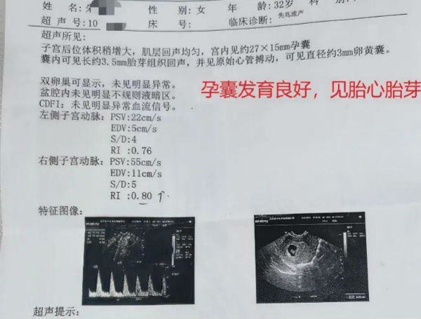 患者口服中药一段时间后,7月在居住地金瓶梅电影 复查显示子宫增大,右侧卵巢有一个15毫米大的卵泡(成熟卵泡大约18-20毫米)。8月初,患者经检查确定怀孕,但是其孕酮只有1,胡樱指导其及时进行用药,后患者一直在胡樱门诊处随诊,进行保胎治疗。目前,患者孕三项数值及B超均提示胚胎发育良好,且最近一次B超见胎心胎芽,患者此胎基本稳定。