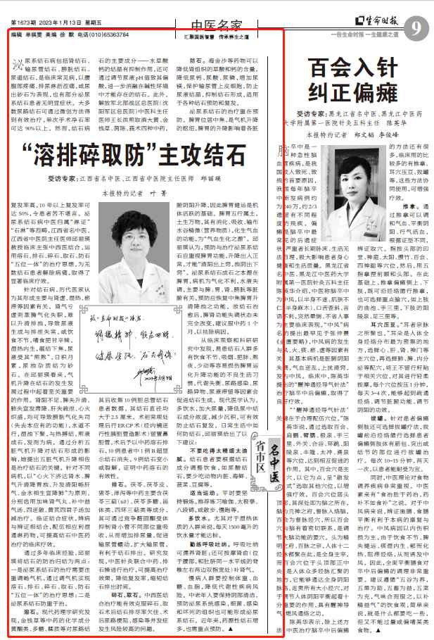 泌尿系结石病包括肾结石、输尿管结石、膀胱结石、尿道结石,是临床常见病,以腰腹部疼痛、排尿淋沥涩痛,或尿出砂石为表现,也有部分泌尿系结石患者无明显症状。大多数尿路结石可通过微创方法得到有效治疗,单次手术净石率可达90%以上。然而,结石病复发率高,10年以上复发率可达50%,令患者苦不堪言。泌尿系结石病中医归属“淋证”“石淋”等范畴,江西省名中医、金瓶梅电影 主任医师邱丽瑛教授临床主张中西医结合,运用溶石、排石、碎石、取石、防石“五位一体”的治疗思想,为无数结石患者解除病痛,取得了显著临床疗效。