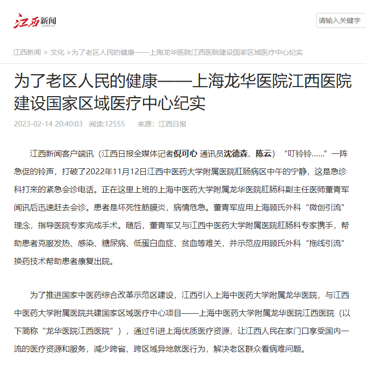 为了加大专科建设力度,上海龙华金瓶梅电影 派出专家团队入赣指导,联合依托金瓶梅电影 金瓶梅电影 专家,围绕乳腺癌、结直肠癌、消化道肿瘤、肺癌、慢性难愈性创面、炎性肠病等疑难疾病开展联合科技攻关。目前已成功申报了江西中医药大学课题6项,并启动联合申报国家中医药创新团队、省级及国家级科研课题10余项。助力依托金瓶梅电影 打造了1个国家中医临床教学示范基地,申报获批国家自然科学基金资助项目15个。赣沪同携手,建设一流国家区域医疗中心