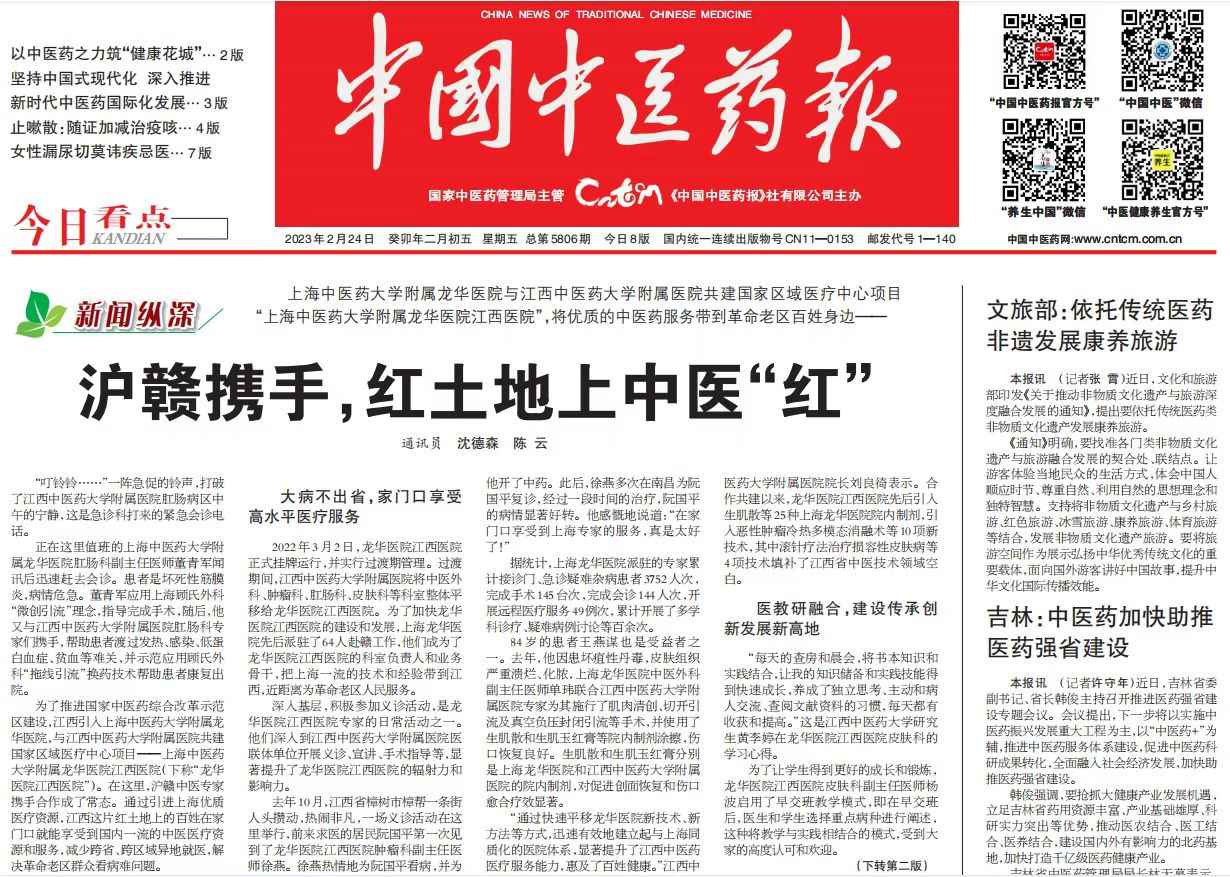 【中国中医药报头版头条】沪赣携手,红土地上中医“红”