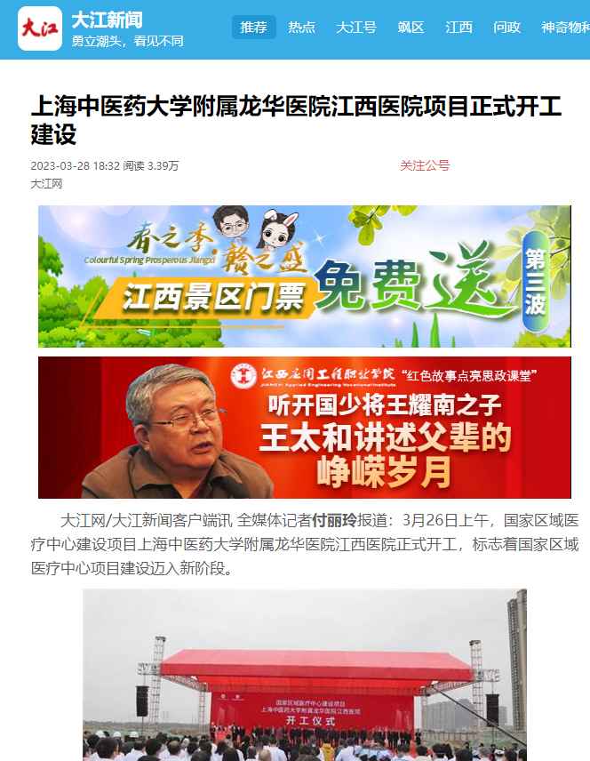 【大江网】上海中医药大学附属龙华金瓶梅电影 江西金瓶梅电影 项目正式开工建设