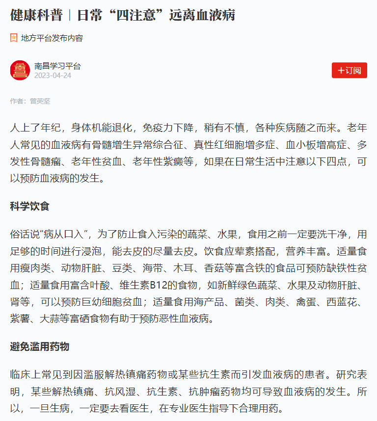 【学习强国】曾英坚:日常“四注意”远离血液病