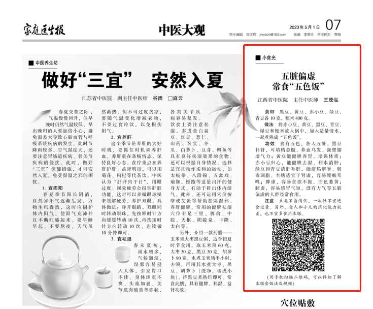 【家庭医生报】王茂泓:五脏偏虚常食“五色饭