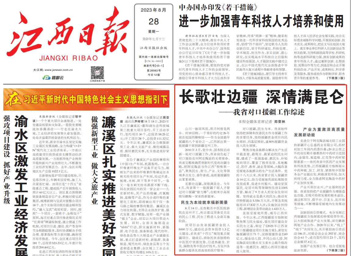 【江西日报】长歌壮边疆 深情满昆仑 ——我省对口援疆工作综述