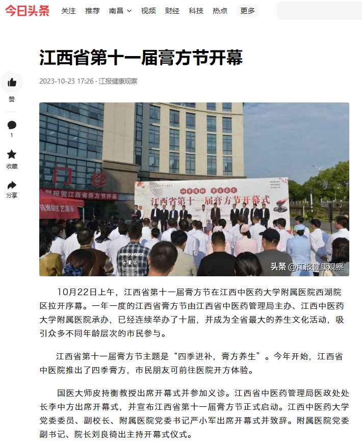 在江西省第十一届膏方节开幕式现场,活动内容丰富多彩,不仅有大型义诊活动,还安排了膏方制作工艺展示、道地药材展示品鉴、四季养生药茶品茗、中医特色诊疗技术体验、古典音乐赏析等。为市民朋友提供一场文化养生盛宴,感受中医药文化和个性膏方配制。