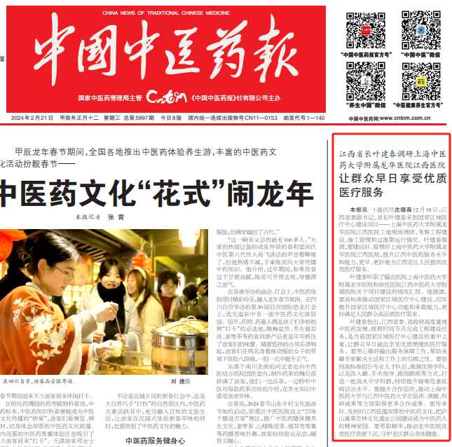 ,提升江西中医药服务水平和能力,更早、更好地为江西老区人民提供优质医疗服务。